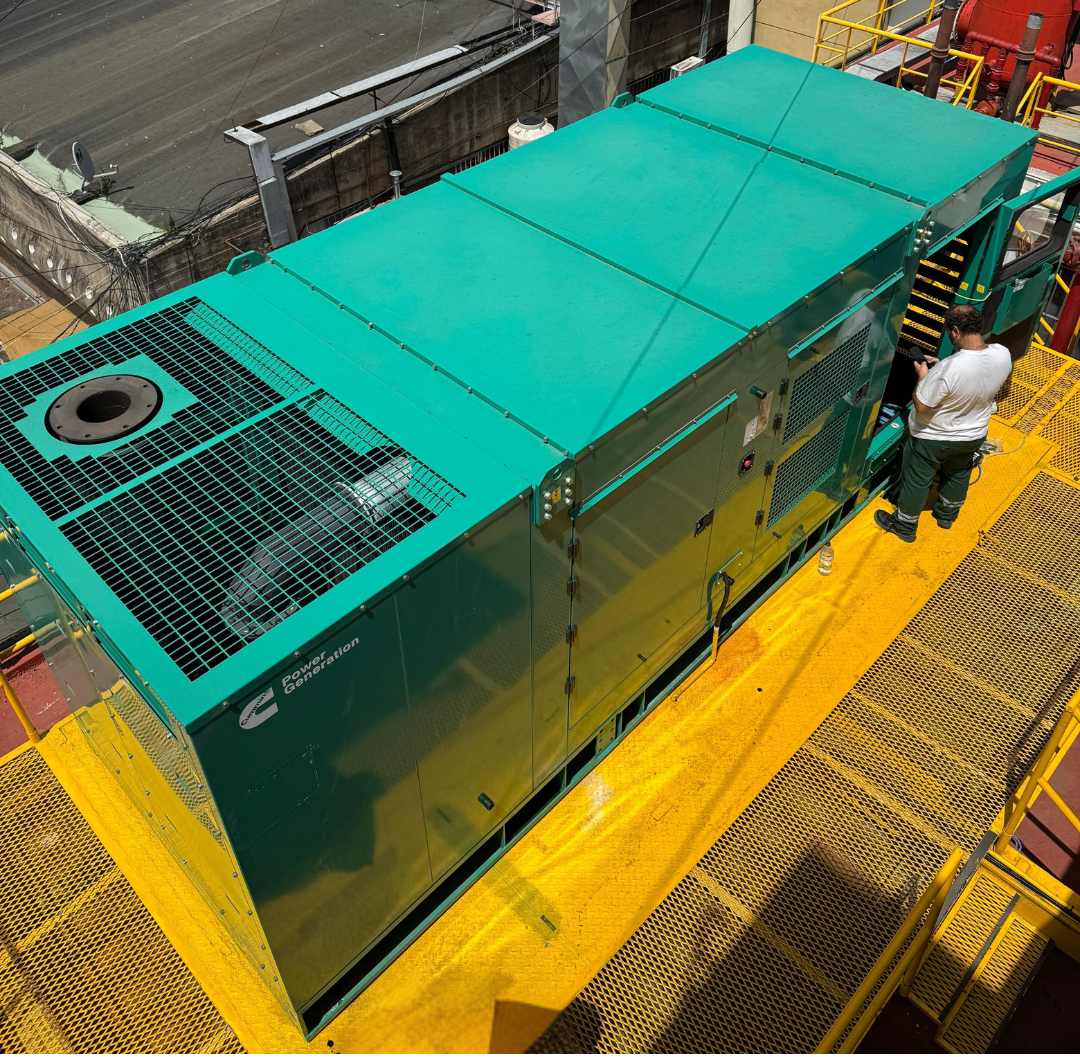 El equipo instalado, de 900 kVA en modo stand by (uso de emergencia) y 820 kVA en modo prime (uso continuo), reemplazó uno de menor potencia y funciona como backup permanente por si fallara el servicio de red eléctrica. Al ser un equipo cabinado pudo ser instalado en la terraza del edificio, a la intemperie.
