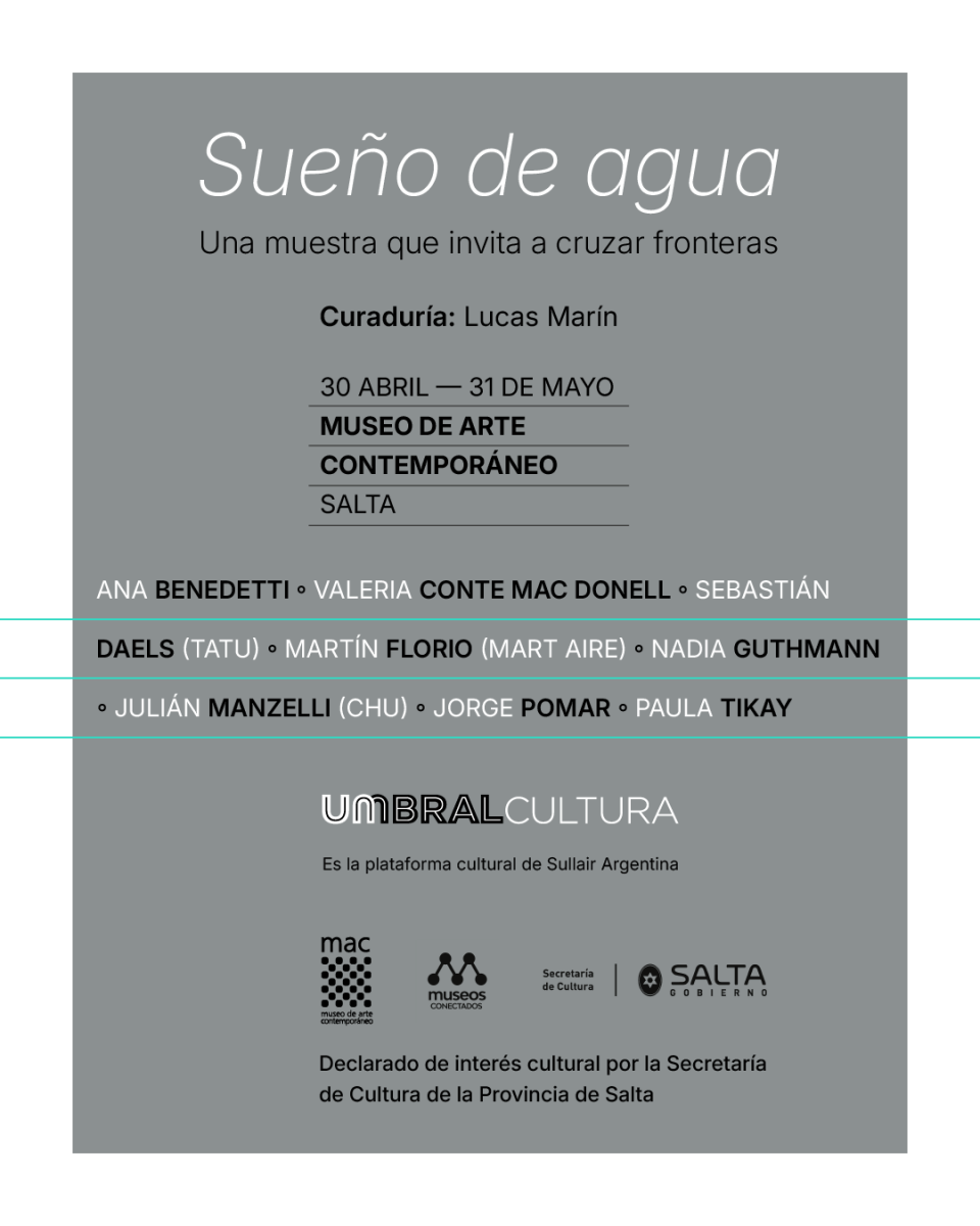 El próximo 30 de abril a las 20 horas inauguramos “Sueño de Agua”, una nueva exhibición de Umbral Cultura en el Museo de Arte Contemporáneo de la ciudad de Salta.
